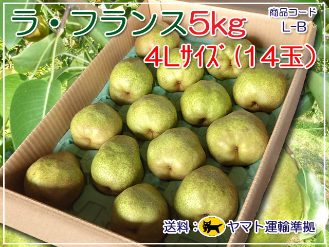 L-B ラ・フランス5㎏ 14 玉(4L) ツイートする シェアする 販売価格: 4,500円(税込み) 会員価格 (税込み) 通常価格 (税込み) 在庫 0 商品コード L-B JANコード 熨斗なし 熨斗あり(無地) 熨斗あり(お歳暮) 数量 - + 在庫切れのため注文いただけません。 カテゴリー ラ・フランス